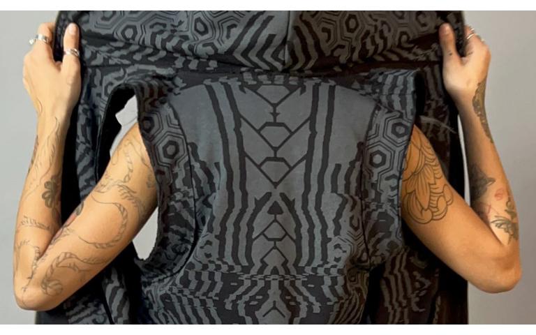 Tribal and cyber-tribal prints read clearly even in heavy motion. Bold lines and symbolic shapes hold their structure as you move, giving the pants a strong presence without visual clutter.